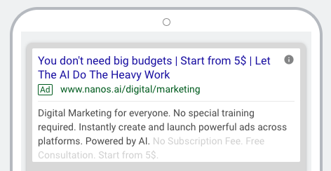 The description provides further explanations about Nanos and some features of the platform. In this case, our goal is to increase brand awareness and bring users to the nanos.ai site to discover more about us and the product.