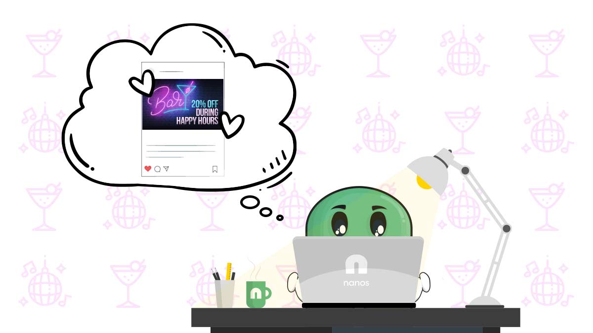 When it comes to nightclub advertising, creativity is key. Use appealing imagery of people having fun at your location or a creative image involving your drink menu.